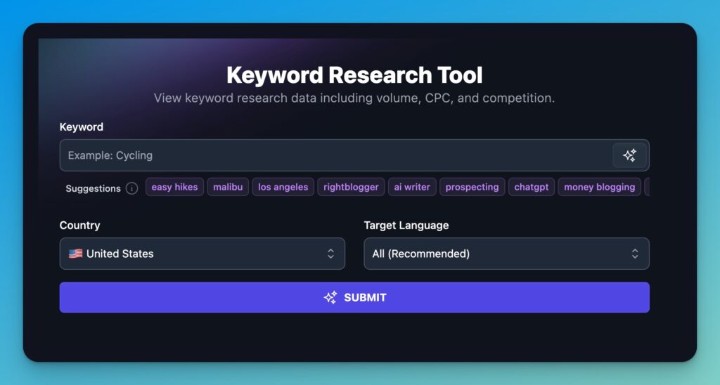Try my free AI-Powered Keyword Tool to get dozens of research-backed ideas for keywords & topics to write about on your blog today.