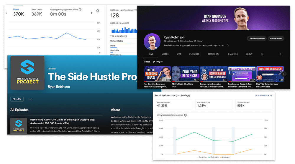 I’m very selective about the brands I work with when it comes to sponsored blog posts and relevant sponsorships on my podcast (The Side Hustle Project) & YouTube channel. I’ve worked with partners like Freshbooks, LinkedIn, Close, Monday.com, Slidebean, and others who want to reach—and provide genuine value to my audience of 500,000+ bloggers, marketers, small business owners, freelancers and entrepreneurs. Shoot me an email at ryan@ryrob.com for more details.
