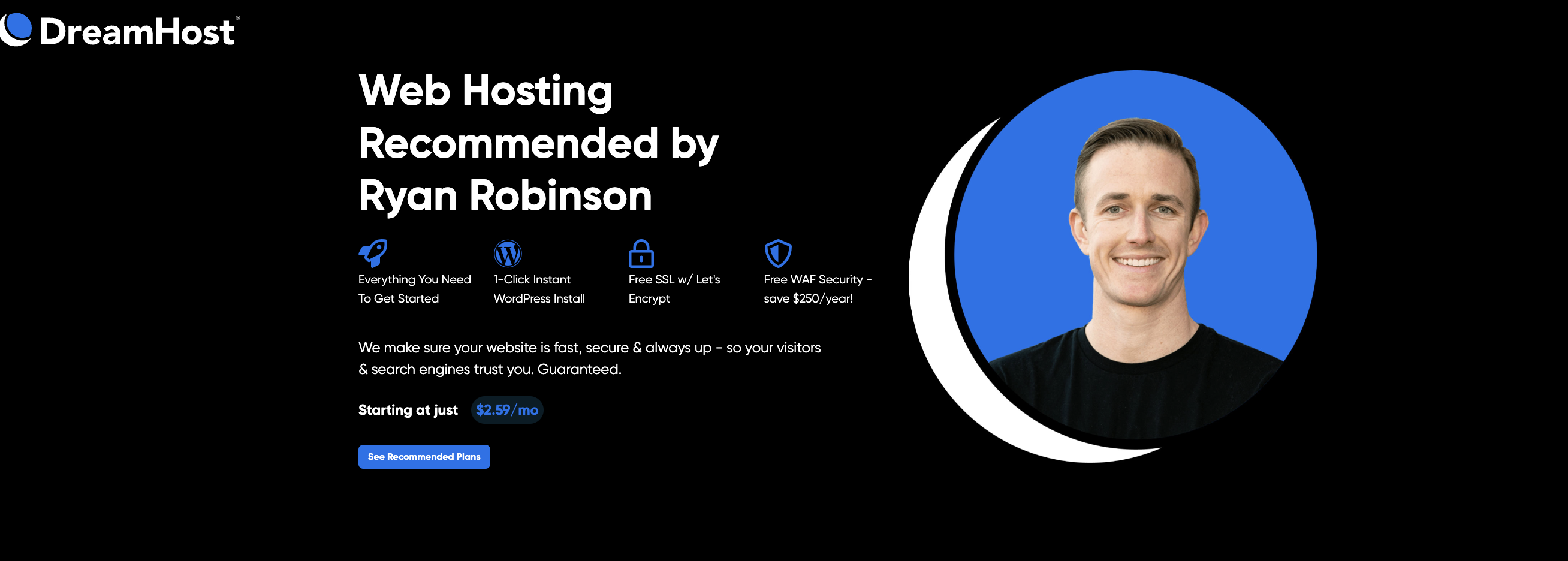 Founded in 1996, DreamHost is one of the most established (and most trusted) web hosting companies in the world. Their starter shared starter hosting plan is extremely affordable at $2.59/mo.