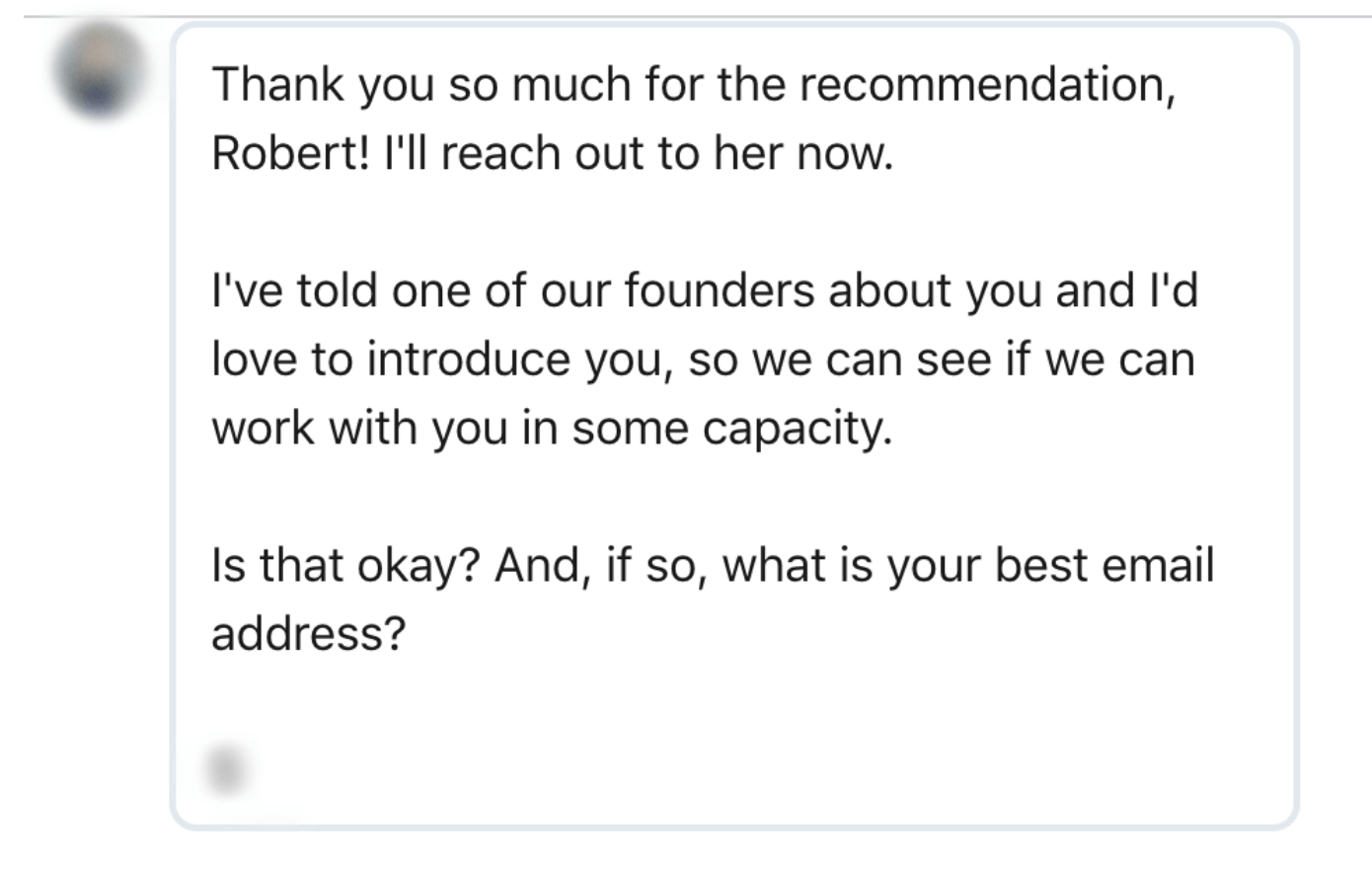 Like how I followed up with someone after seeing a random comment on Facebook. Who does that?