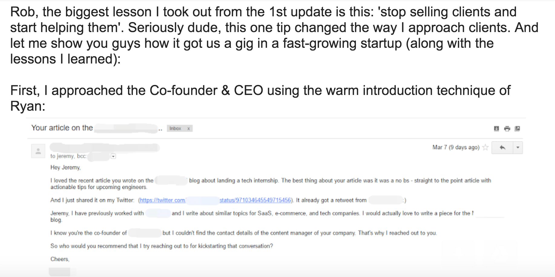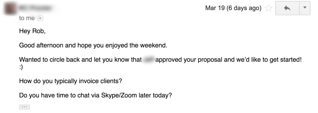 - One reader, who was already working with a client but wanted to ask for more business (Tim, you crushed it!)