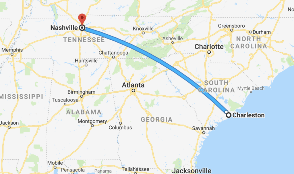 I was also 550 miles away from my home in Nashville, TN on a work trip to Charleston, South Carolina.