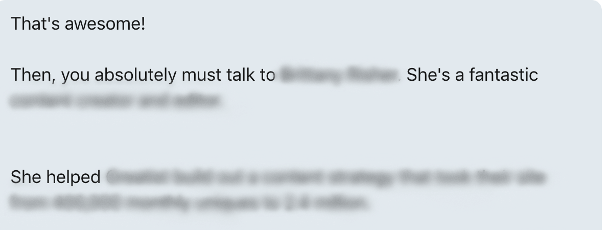 PLUS, when I followed up afterwards, I was able to send a hyper-targeted proposal for the work I could do for him.