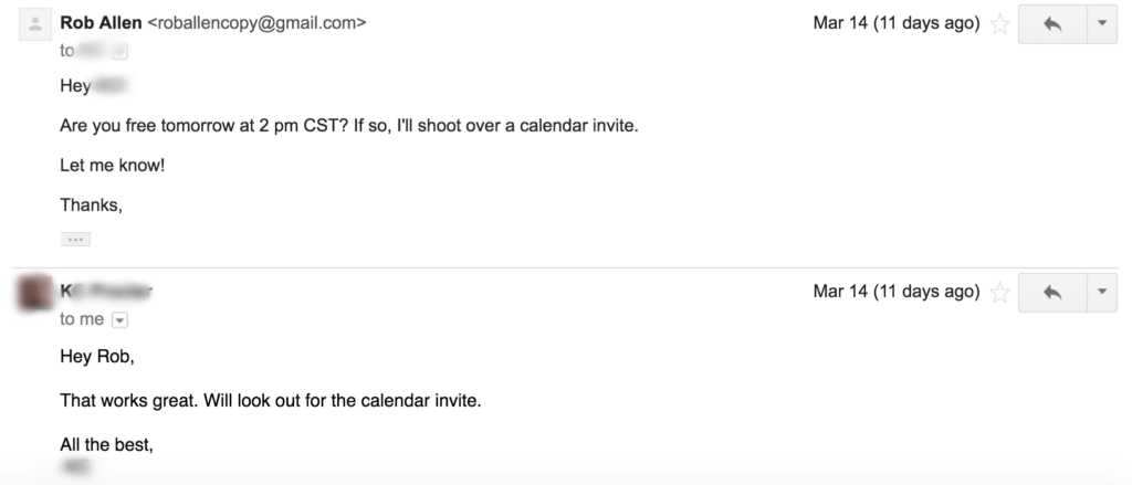 This allowed me to get on the call prepared and already have a good idea of where I wanted to lead the conversation.