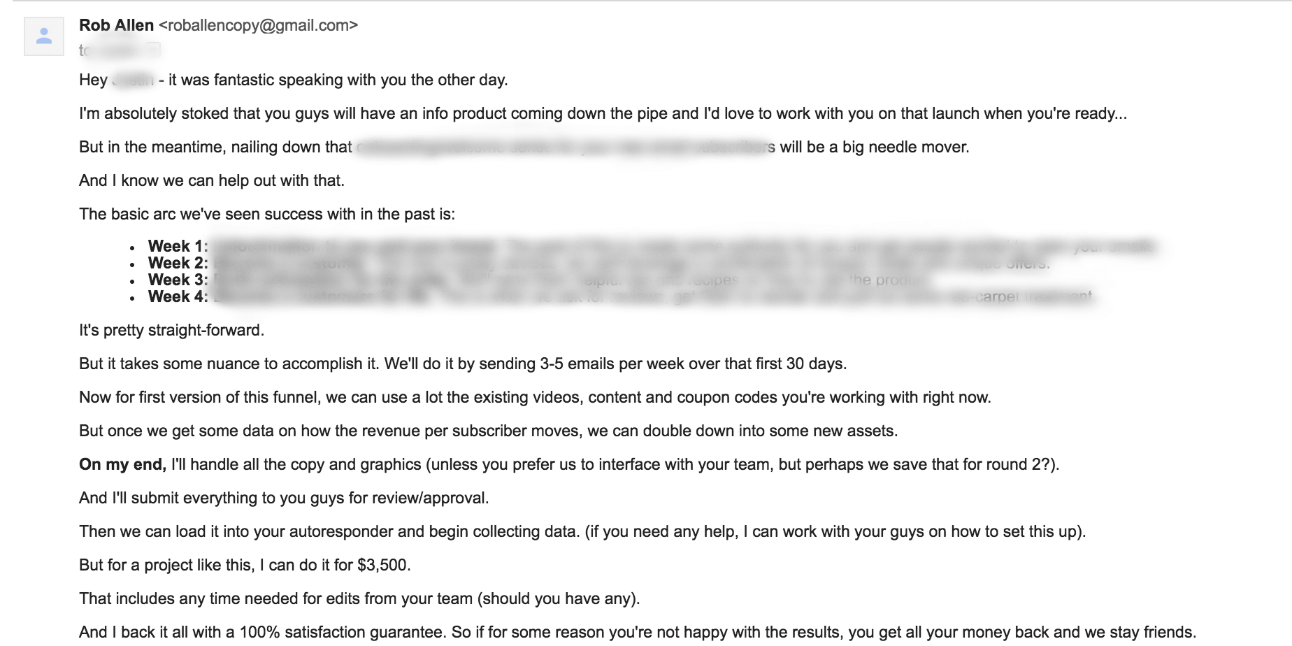But I wanted to lay it out week by week to make it crystal clear HOW we could solve his problems over the next 30 days.