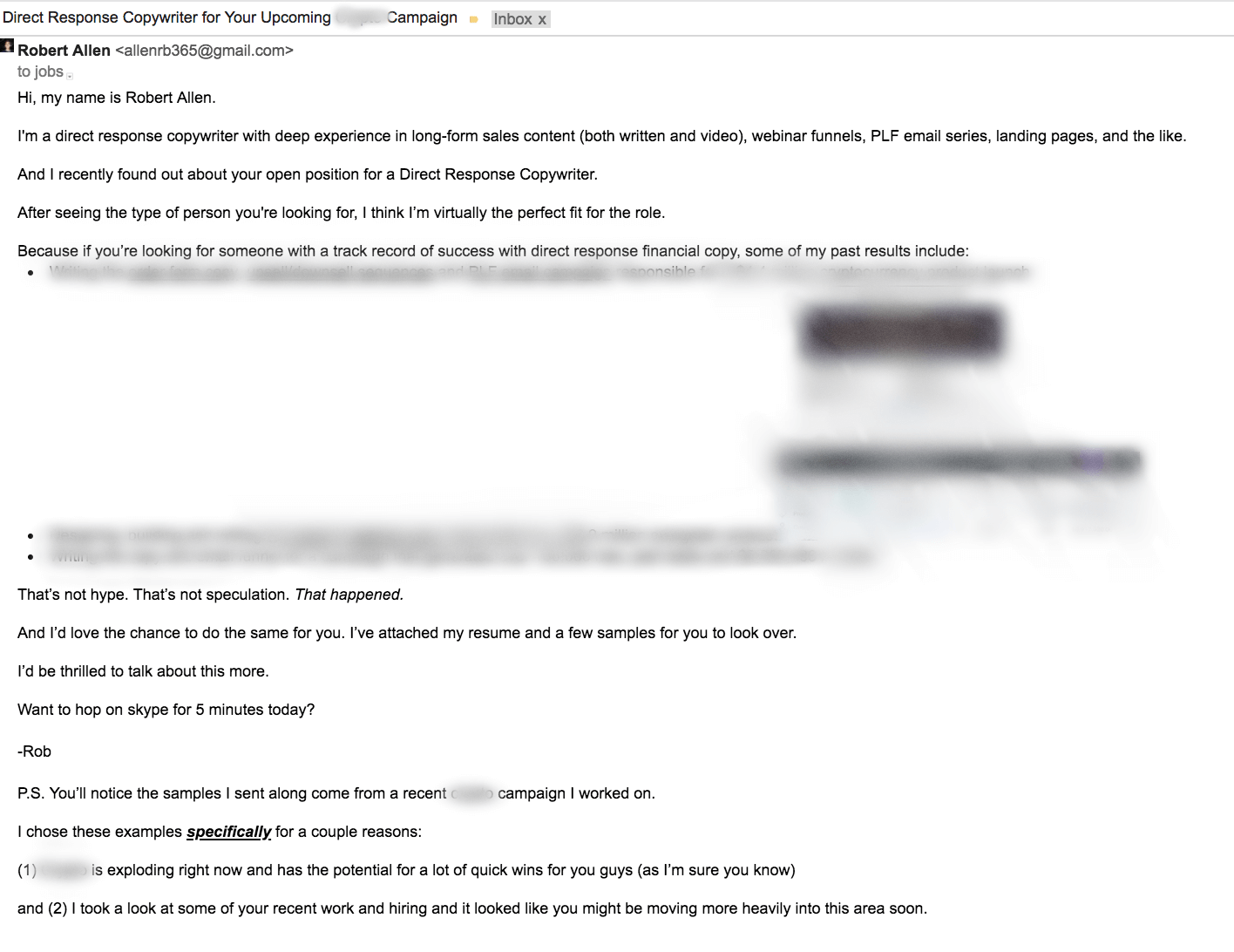 The email itself is rather short. But I do want to point out a couple of things that make it powerful.