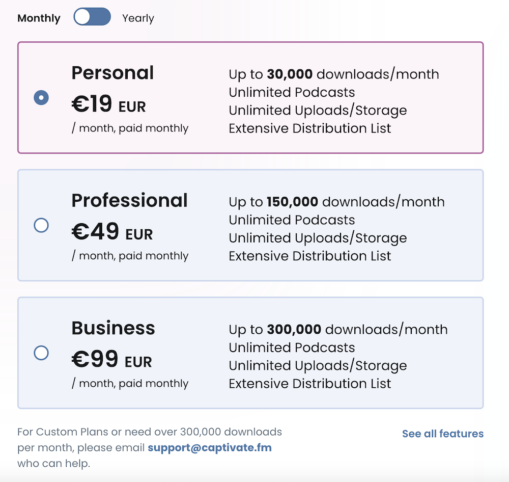 The costs of podcasting equipment and hosting can really add up over time, plus you may want to pay for extras like transcription or a custom intro rather than royalty-free music. And, of course, you’ll likely want to get a good return for the time you invest into your podcast.