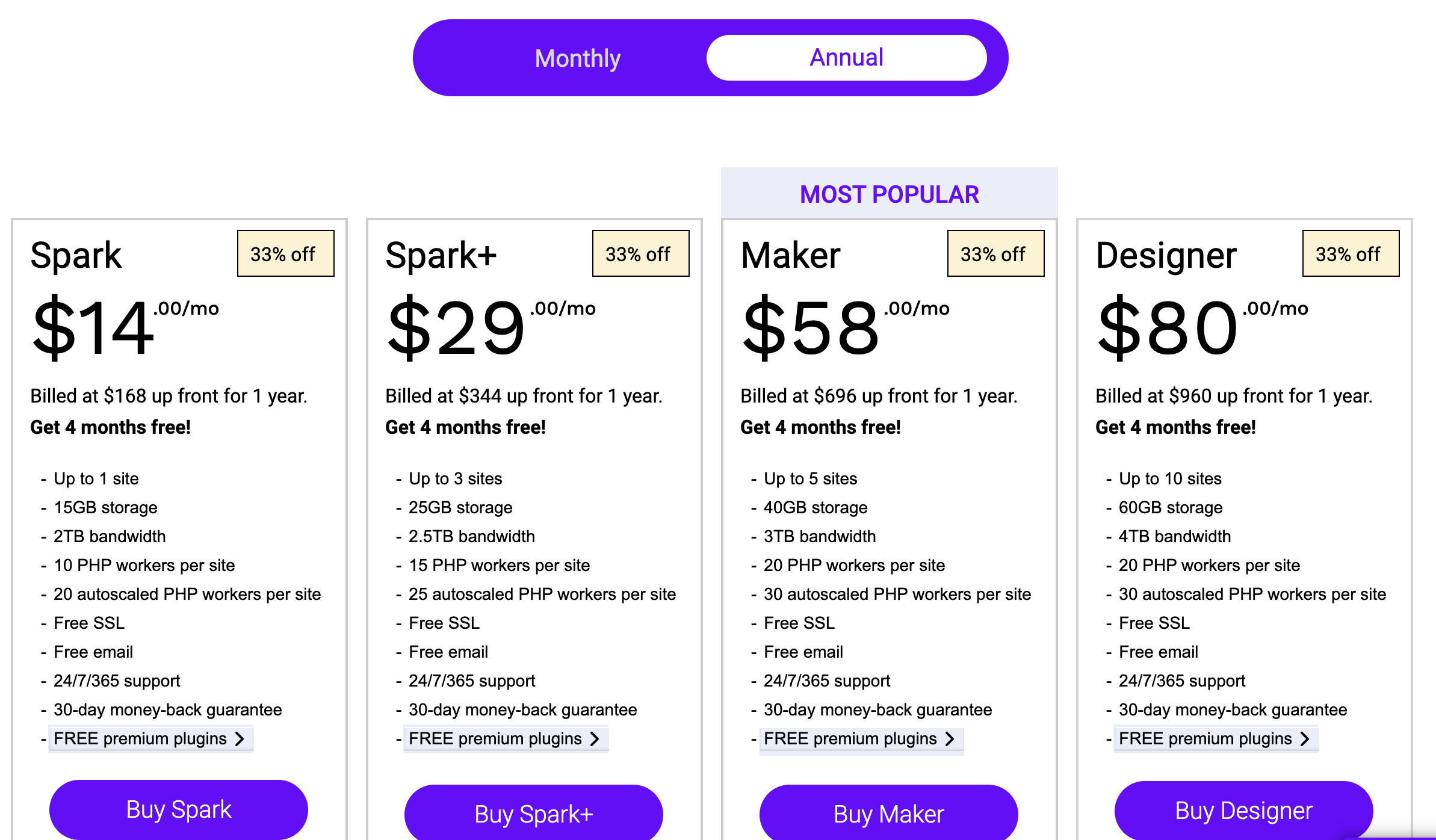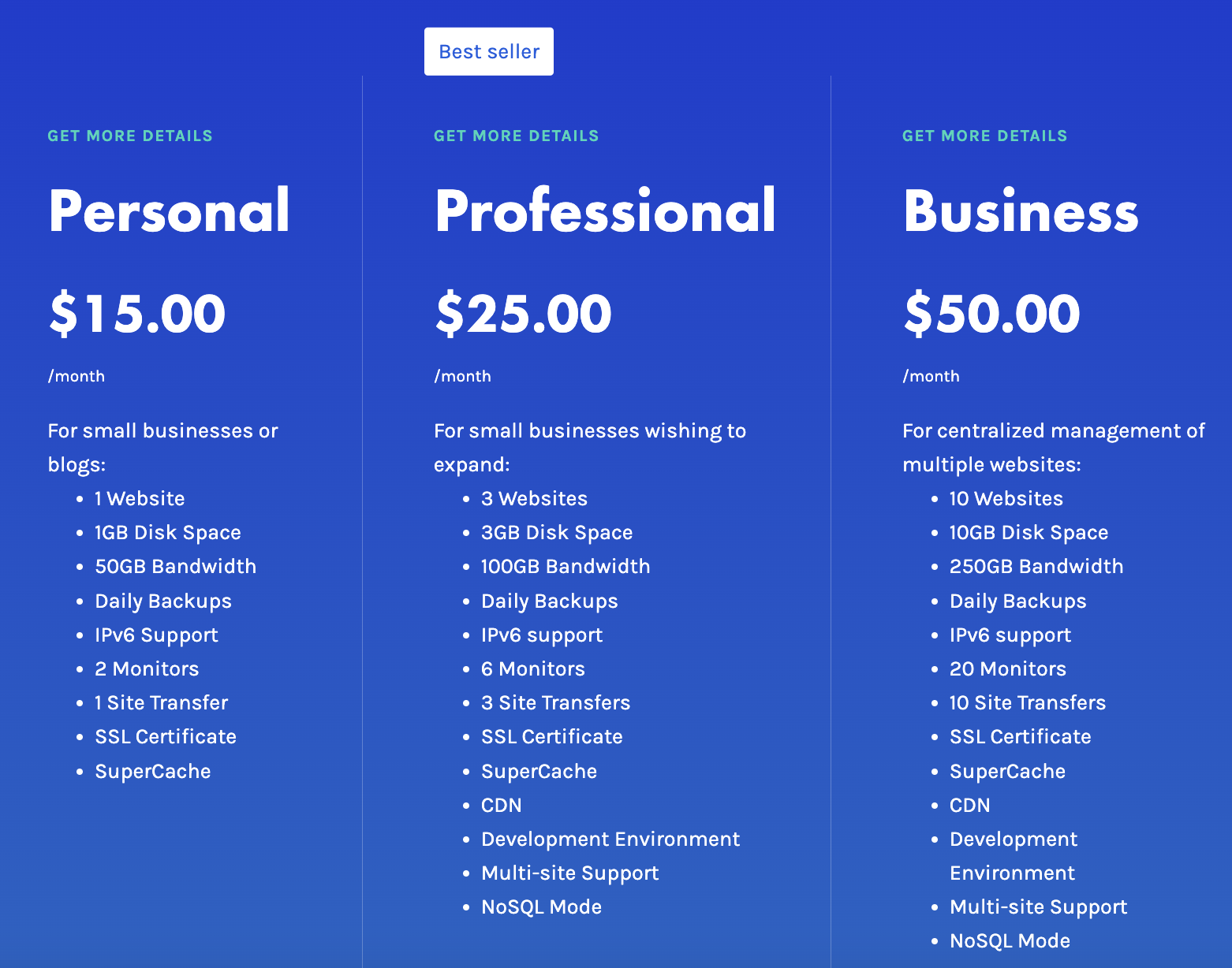 You’ll pay a bit of a premium for all of the additional features that come with managed hosting plans (compared to their shared hosting counterparts), but you’re getting a more robust service that’s designed for blogs and websites that are at least beginning to generate revenue and can afford to upgrade their hosting experience.