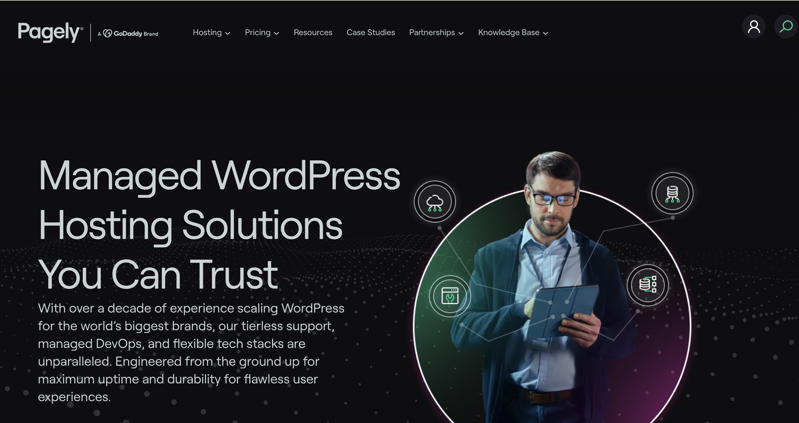 With plans starting at $375/month and going all the way to $2,500 or more, Pagely is a managed WordPress hosting solution for businesses already making bank and looking to provide a stellar experience to their visitors.