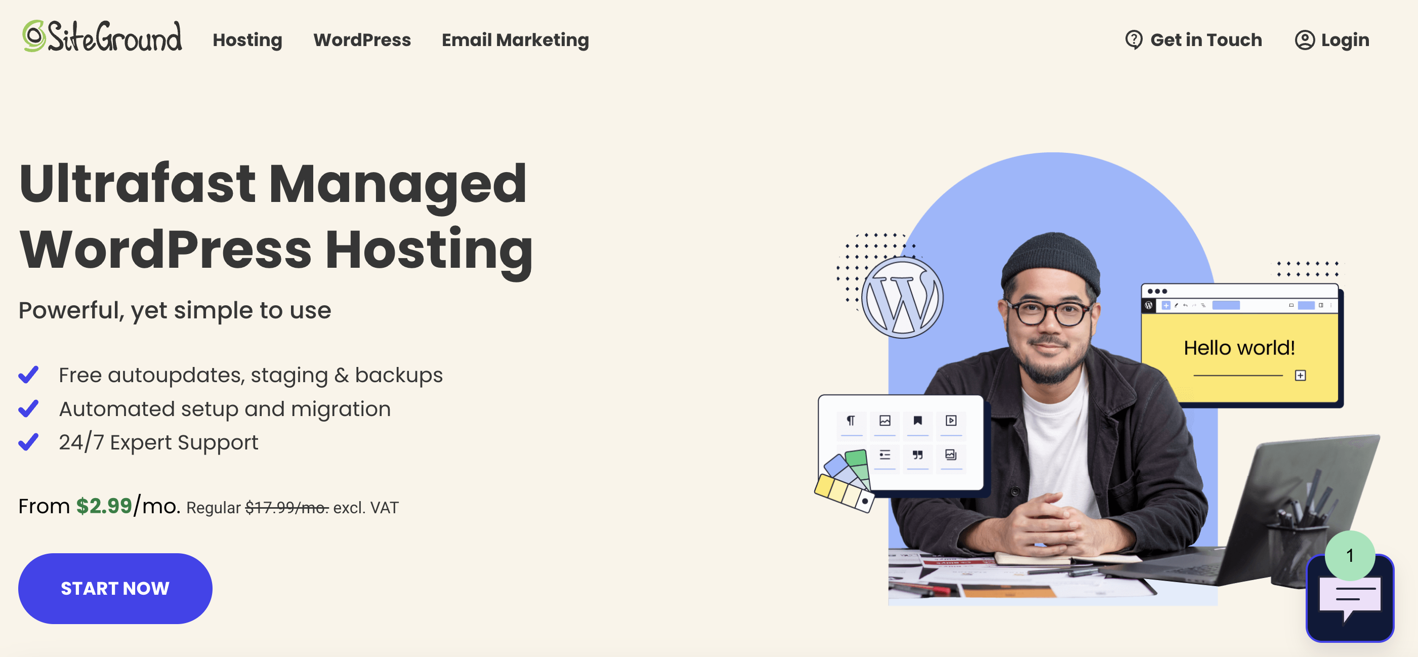 7. SiteGround: $2.99/mo (Managed WordPress Hosting)